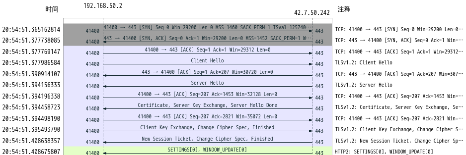 下面图片是Wireshark分析的一段HTTPS握手协商交换秘钥的过程: